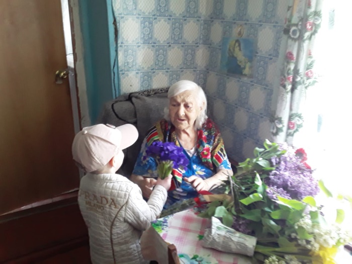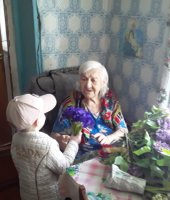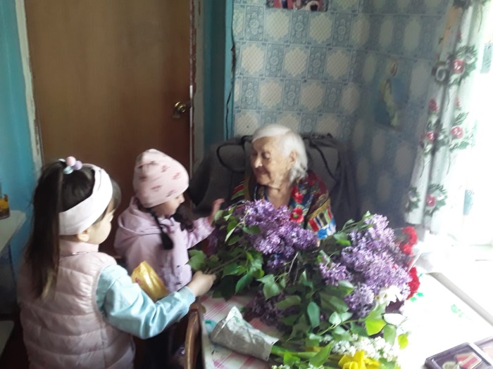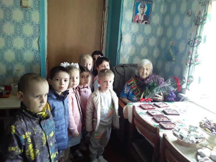 Нина Ивановна очень тепло встретила дошколят, рассказала им о тяжелых годах войны, о долгожданном Дне Победы, поблагодарила нынешнее поколение за сохранение памяти о судьбоносных годах в жизни нашей страны.