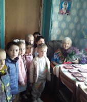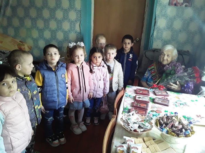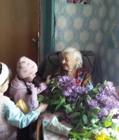 В канун величайшего всенародного праздника Дня Победы в Великой Отечественной войне, воспитанники средней группы № 1 «Капельки» МБДОУ детского сада № 33 «Светлячок» посетили и поздравили труженицу тыла Ковалеву Нину Ивановну c наступающим праздником 9 мая.