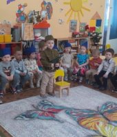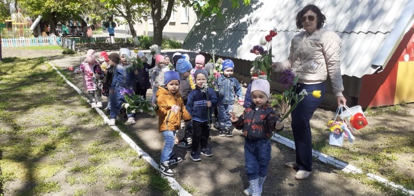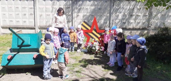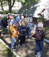Во время прогулки дошколята совершили путешествие к аллее героев, которая находится на территории детского сада, и принесли цветы в память о павших земляках.