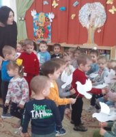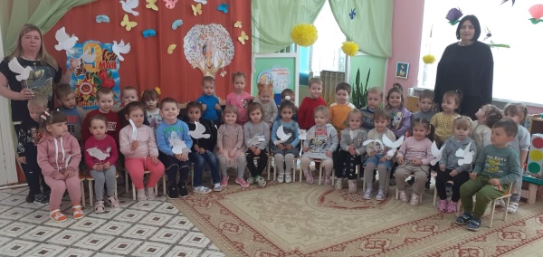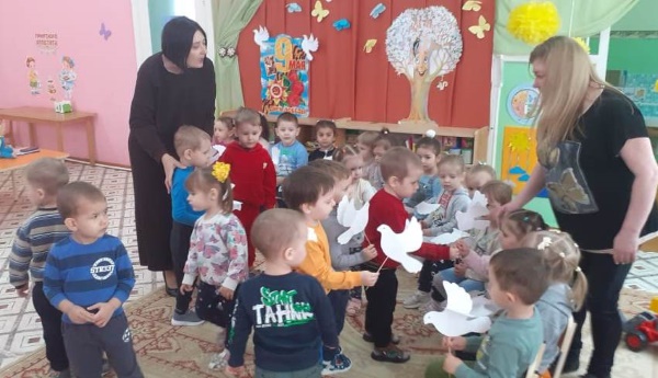 В преддверии празднования дня Победы в группе раннего возраста «Ягодки» было проведено ряд мероприятий. С целью расширения знаний у дошколят о символе мира прошла акция «Голубь мира». Малыши подарили голубей ребятам младшей группы.