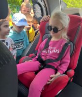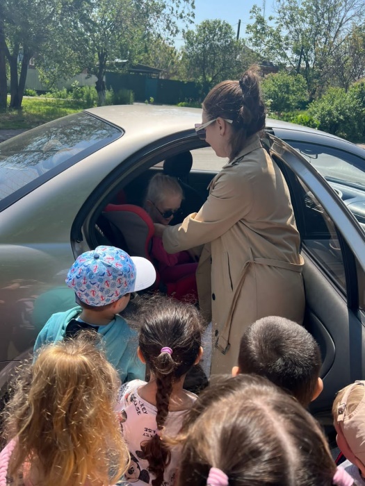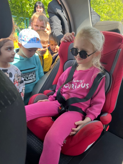 В заключение досуга родители вместе с детьми провели акцию «Ребенок - безопасный пассажир». Родители продемонстрировали ребятам автокресло для безопасного перевоза детей и рассказали о его важности и необходимости.