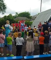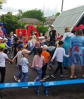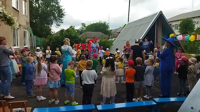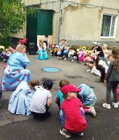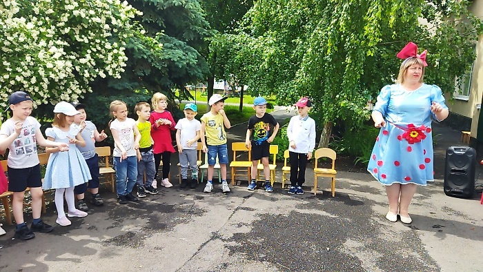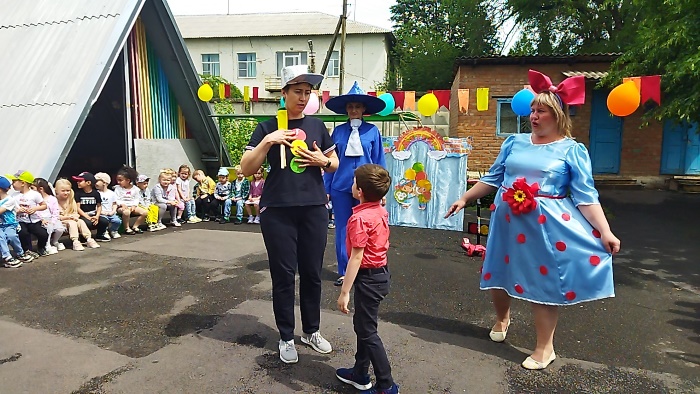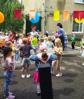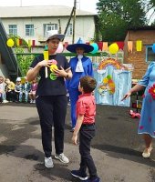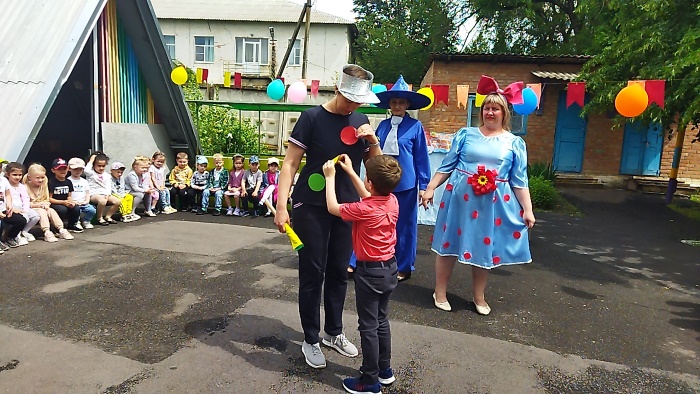 Праздник начался с общего веселого хоровода. В гости к ребятам приходила весёлая Клоунесса Ириска (в роли воспитатель Ковальчук Т.А.), которая веселыми песнями и танцами о лете, дружбе мире и доброте, зарядила всех веселым настроением.