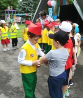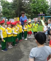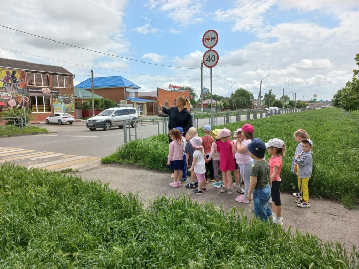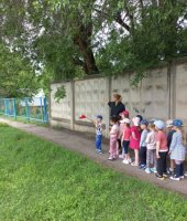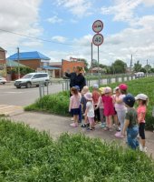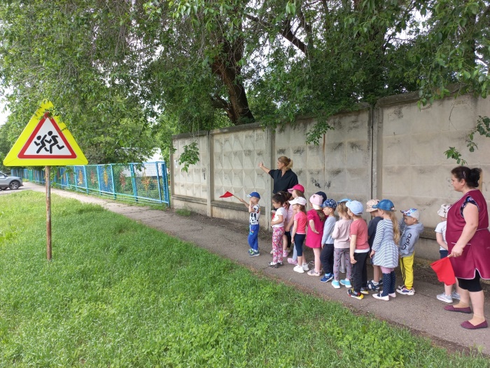 В рамках акции «Внимание дети» средняя группа «Ромашка» с воспитателем Агафоновой Л.М. и младшим воспитателем Зандарян М.С. совершили экскурсию к проезжей части и светофору, где понаблюдали за сигналами светофора и движением транспорта, пешеходов.