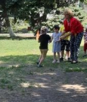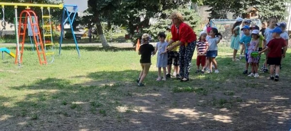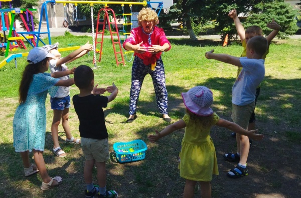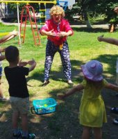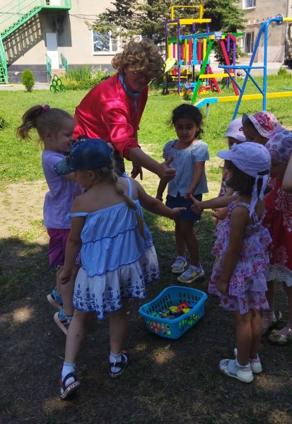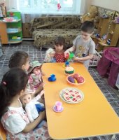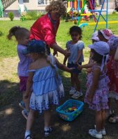 А в завершении недели «Моя семья» был проведен праздник, на который пришел в гости веселый домой Кузя (роль я взяла на себя). Дети рассказали ему, что такое семья и показали, как они помогают своим родным. Бабушке они помогли собрать клубочки, дедушке ловить рыбу, маме варить компот и суп, а папе водить машину. Очень задорно ребята исполнили песню для Кузи «Моя семья» и решили домовенка взять к себе семью.