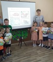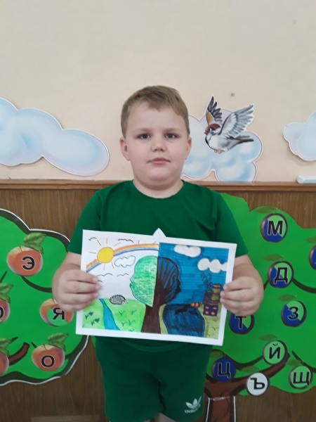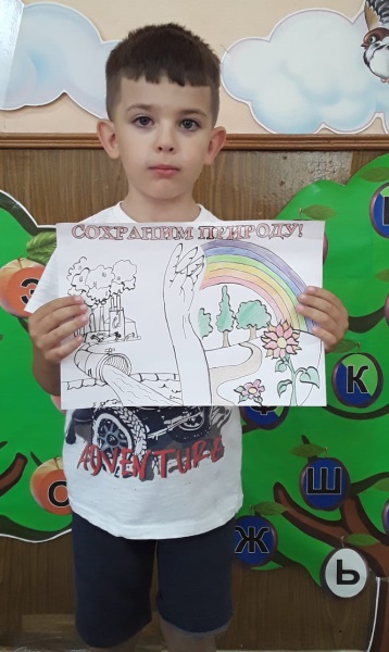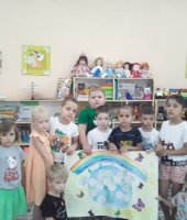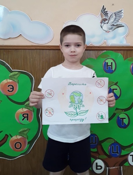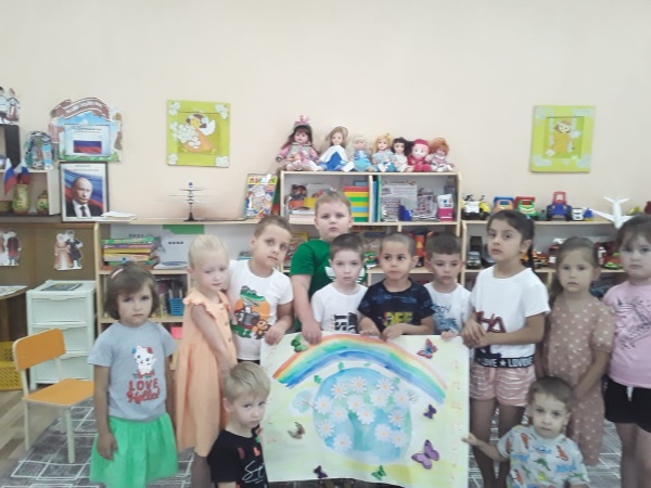 В нашем детском саду № 33 «Светлячок» с 10 по 15 июля проходила тематическая неделя «Земля наш общий дом». В течение этой недели мы с детьми старшей группы № 1 «Капельки» играли в настольно-печатные экологические игры «Лото», «Чей домик?», рассматривали книги о природе, выполнили коллективную аппликацию «Береги природу», просмотрели презентацию «Мир насекомых». Для закрепления знаний о природе провели викторину «Природа вокруг нас». Дети совместно с родителями нарисовали рисунки об охране природы. Ребята приняли участие в акции «Защитим природу», раздавали родителям природоохранные знаки «Поведение в природе».