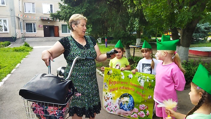 В рамках тематической недели «Земля наш общий дом» с воспитанниками подготовительной группы «Звездочка», я провела экологическую акцию «Каждую соринку в корзинку». Ребята призывали всех беречь свою землю. Исполнили экологический флешмоб. Для родителей были изготовлены листовки с призывом «Любите и берегите Землю!». Дошкольники вручали родителям листовку и небольшой пакет для уборки мусора.