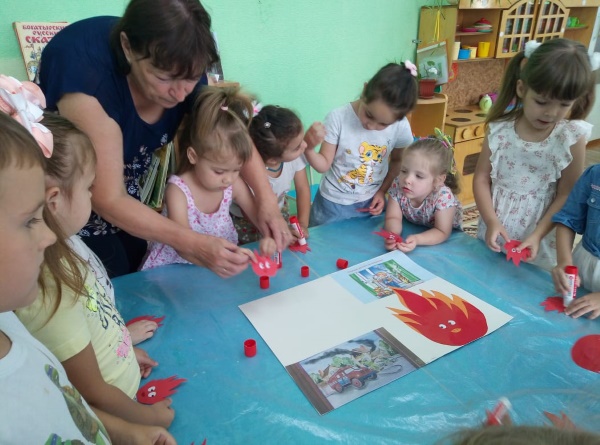 В познавательно - игровой форме с ребятами закрепили знания правил пожарной безопасности и поведения во время пожара. Обсуждали ситуации: «Причины возникновения пожара». Проведены беседы с ребятами подготовительной группы: «Зачем нужна эвакуация во время пожара», «Огонь друг-огонь враг», «Какие предметы являются пожароопасными», а с в средней группе: «Почему огонь может быть опасен», «Предметы, требующие осторожного обращения».
