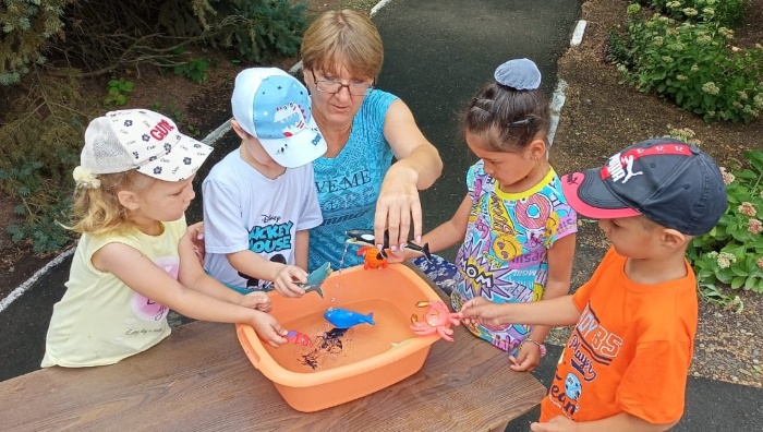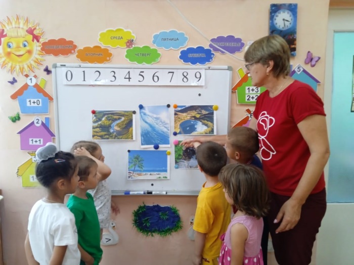 С 7 августа у нас в детском салу №33 «Светлячок» проходит тематическая «Неделя игр и воды». В течение недели мы с детьми старшей группы № 1 «Капельки» рассматривали иллюстрации различных водоемов, апплицировали морских жителей. С большим интересом играли в игры «Верно - неверно», «Ловись рыбка большая и маленькая». Разучивали наизусть отрывок из произведения К. Чуковского «Мойдодыр».