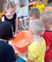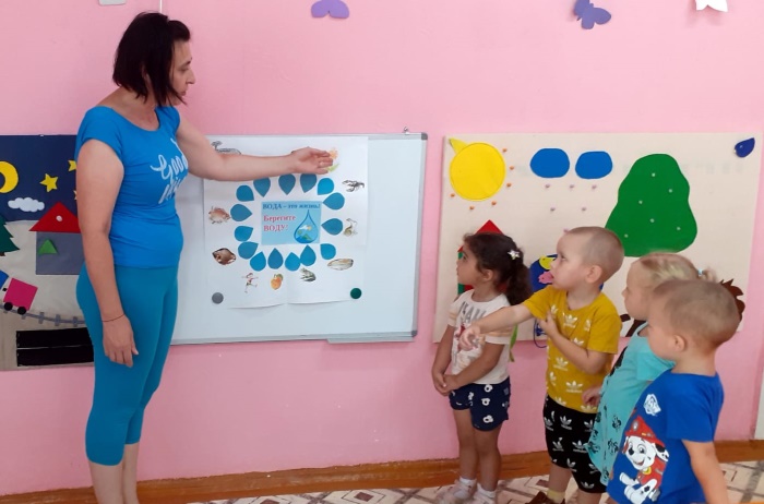В младшей группе «Ягодки» была проведена акция «Берегите воду». В ходе подготовки к акции мы занимались экспериментальной деятельностью для расширения знаний дошколят о свойствах воды. Рассмотрели макет аквариума, и познакомились с многообразием подводного мира. Ребята приняли активное участие в создании плаката «Вода - это жизнь, берегите её». Малыши с интересом рассматривали своё творчество.
