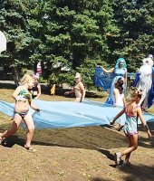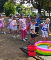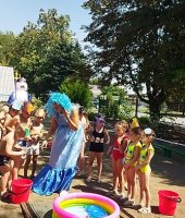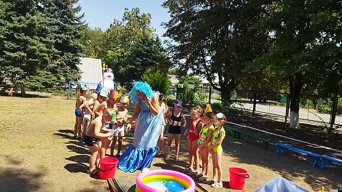 Игры с водой внесли в праздник ещё больше веселья, задора и смеха. Дети с интересом играли в различные аттракционы с водой.