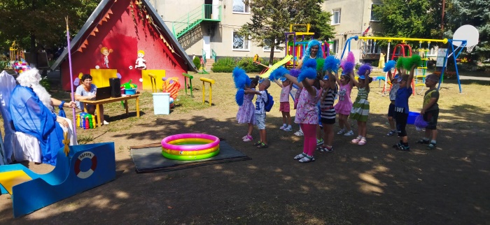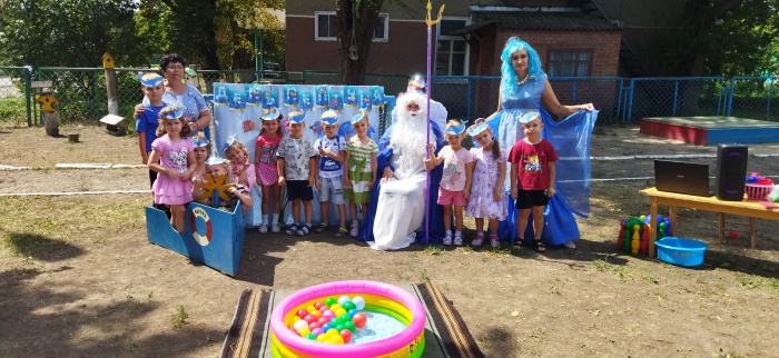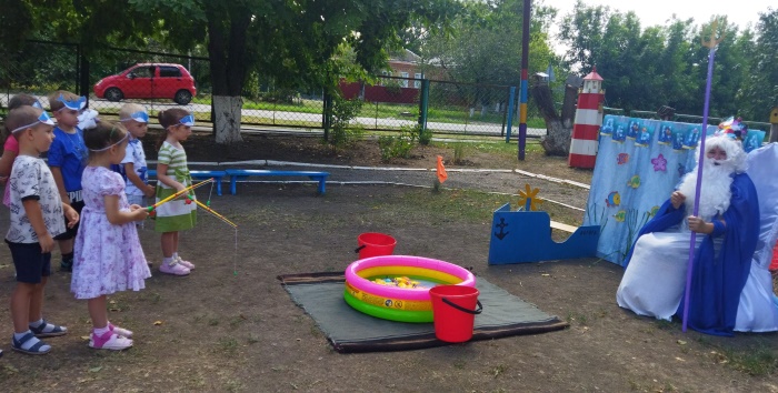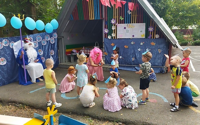 Итоговым мероприятием было развлечение «День Нептуна». Малыши встретились с Нептуном, они станцевали ему танец «Морских обитателей», спели песенку про лето, отгадали морские загадки