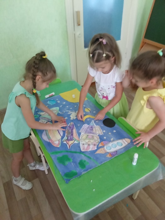 В нашем детском саду познавательно и интересно прошла тематическая неделя «Планета Земля». В течении всей недели с воспитанниками подготовительной группы проводились мероприятия, направление на развитие познавательных и творческих способностей воспитанников, которые осуществлялись через различные виды детской деятельности – рассматривание энциклопедий и просмотра презентаций о земле, о космосе, планетах; в продуктивной деятельности аппликацировали «Моя планета Земля», оформили коллаж «Далекий – далекий космос».