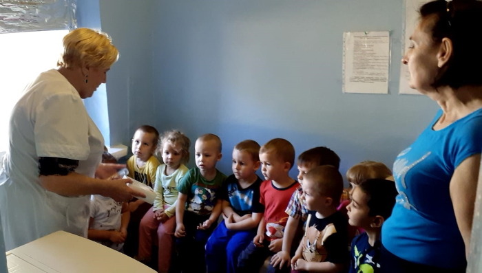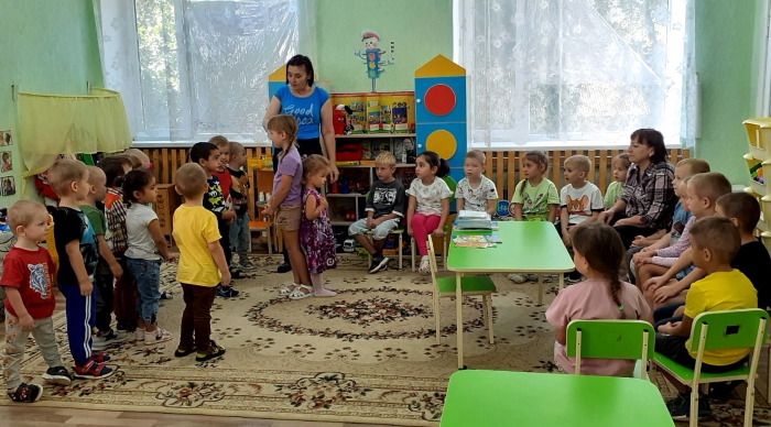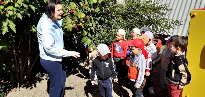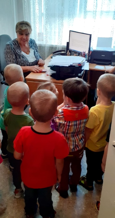 Во время экскурсии ребята посетили кабинет ст. воспитателя, медсестры и бухгалтера. Посмотрели на кухне процесс приготовления пищи. На прачке увидели стопки чистого белья и полотенец, которые постирала и погладила наша кастелянша. В музыкальном зале ребята с интересом рассмотрели музыкальные инструменты. С инструктором по физкультуре выполнили несложные упражнения для укрепления здоровья. Также малыши, посетив ребят подготовительной группы, увидели какие они большие и сообразительные. Пройдя по участку детского сада, дошколята вспомнили название деревьев, цветов и кустарников.
