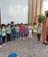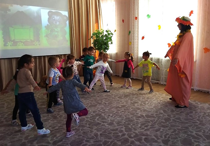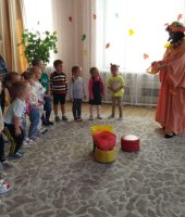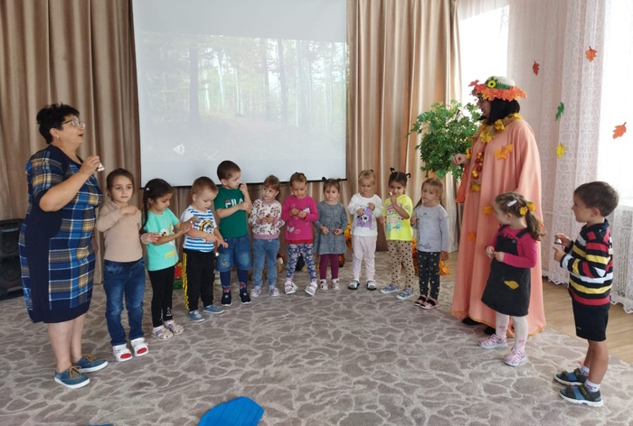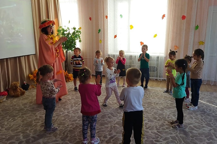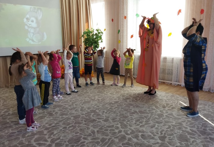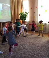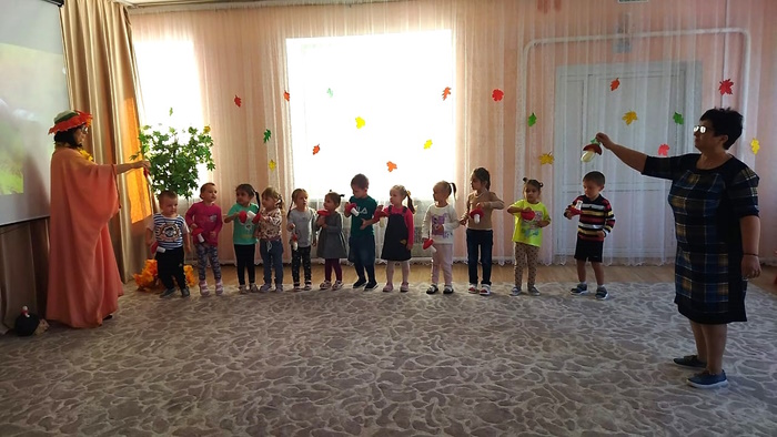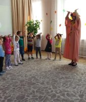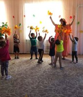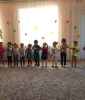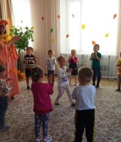 В средней группе «Непоседы» прошло развлечение «Путешествие в осенний лес». В музыкальном зале царила теплая, доброжелательная атмосфера. Дети с музыкальным руководителем (Ермак Л.В.) на поезде отправились в осенний лес. В лесу детей встретила Осень (роль взяла на себя). Осень поиграла с детворой в веселые игры «Перепрыгни через лужи», «Оркестр-игра на колокольчиках», «Осенние листочки», «Весёлые зверята», «Передай шишку». Напоследок детишки с осенью станцевали танец «Осенние листочки». Не забыла она и про гостинцы осенние, угостила ребят вкусными и ароматными яблоками.