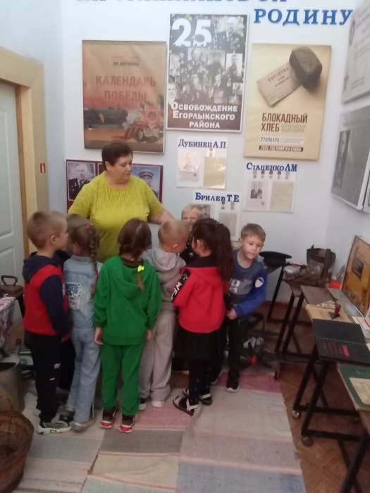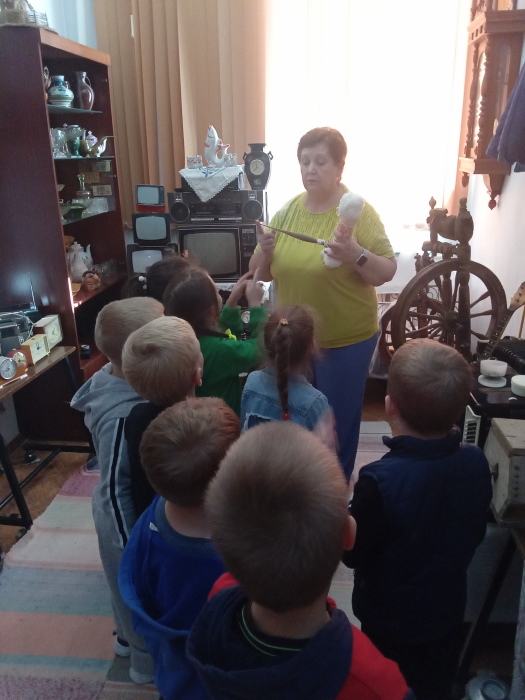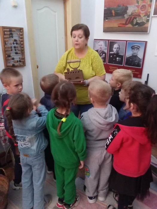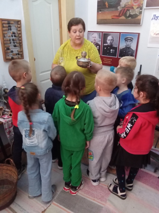 В тёплый, солнечный осенний денёк воспитанники подготовительной группы «Звёздочки» совершили экскурсию в краеведческий музей МБОУ ДО Егорлыкского Центра внешкольной работы. Педагог – организатор Строкова Т.В. радушно встретила ребят и провела очень интересную и познавательную экскурсию по залу музея. Она познакомила с разными экспонатами, такими как старинные утюги, лампы, коньки, приспособление для взбивания масла, которые помогли понять и увидеть быт наших предков, чем в старину они пользовались.