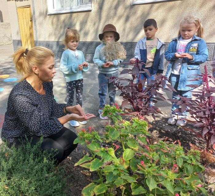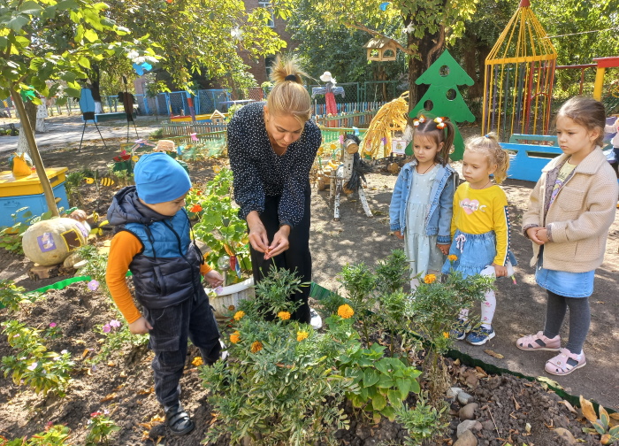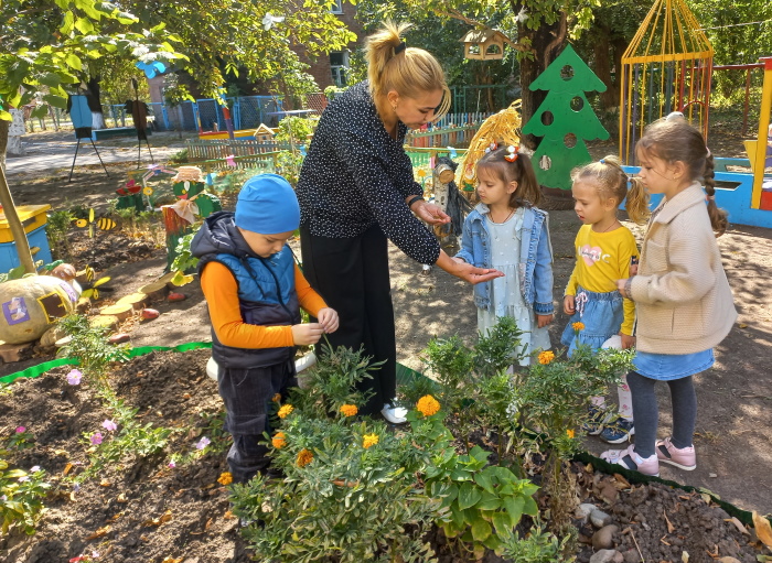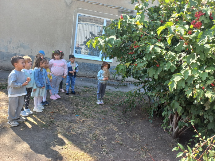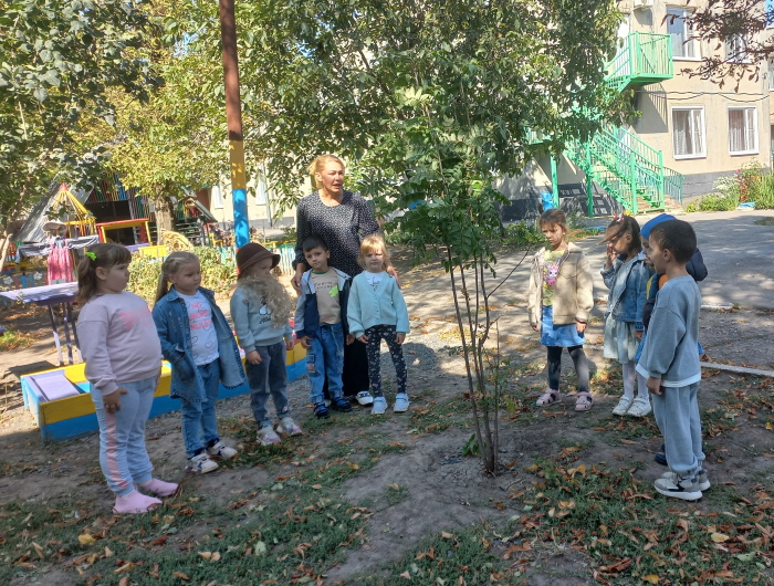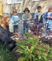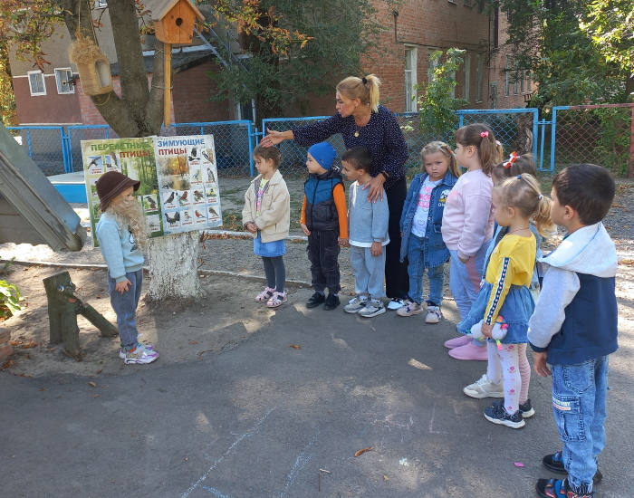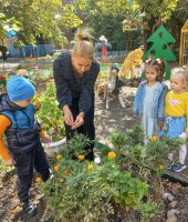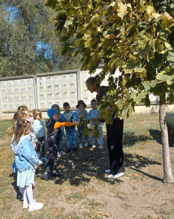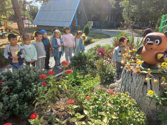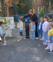 Воспитанники старшей группы № 2 «Ромашка» вместе со старичком-боровичком (в роли воспитанница Виолетта Ц.) совершили путешествие по экологической тропе детского сада. Ребята рассказали ему, каких зимующих и перелётных птиц они знают, показали необычный пень, где спрятались насекомые, собрали семена цветов, чтоб весной высадить их на свою клумбу. Рассмотрели клиновое дерево и сравнили с молодой рябинкой, дети рассказали о различиях между этими растениями. В завершении прохождения тропы дети вместе со старичком – боровичком собрали каштаны для поделок.