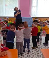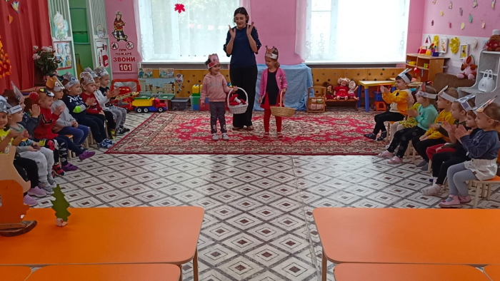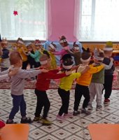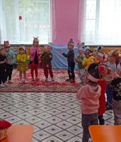 В младшей группе «Ягодки» я провела развлечение «Знатоки животных». Малыши отправились на паровозике в необычное путешествие. Первая станция была «Отгадай-ка», где ребята показали своё умение отгадывать загадки о животных. Следующая остановка была станция «Лесная», там малыши помогли диким животным сделать запасы на зиму. Потом паровозик отправился на станцию «Превращайся», на этой станции дошколята изображали повадки диких и домашних животных. А на станции «Играй-ка» с удовольствием поиграли в игры: «Птички и кот», «Зайцы и волк». В конце ребята посетили станцию «Танцевальную» и станцевав веселый танец зверят вернулись домой в детский сад.