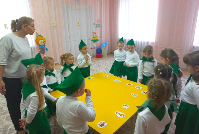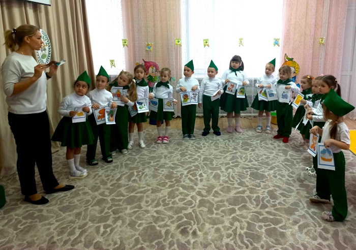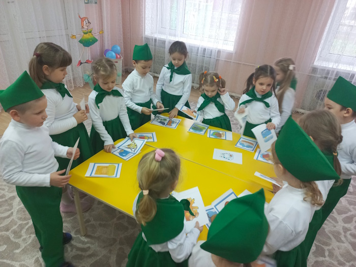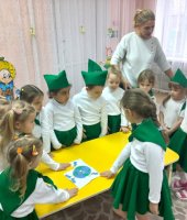 В группу пришло письмо от матушки природы, в котором она обратилась за помощью к Эколятам - дошколятам. Ребятам нужно было отправиться в лес, где их ждали сказочные помощники: Шалун, Умница, Тихоня и Елочка. У каждого из них было задание для юных эколят, нужно было найти животным их домики, назвать художников (времена года), собрать пазлы животных, вспомнить правила поведения в лесу, станцевать задорный танец. За каждое выполненное задание Эколята получали часть пазла, собрав пазл получилась планета Земля.