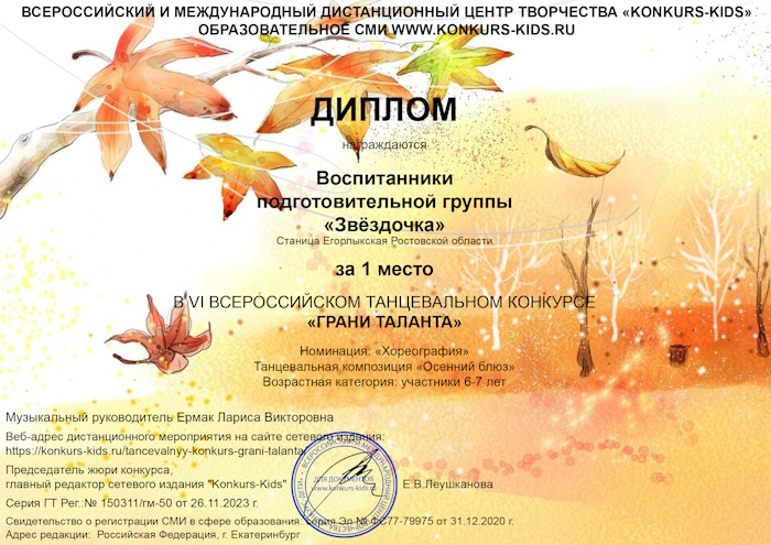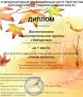 Воспитанники активно приняли участие в мероприятиях, проходящих в детском саду и в конкурсах различного уровня. На празднике для мам исполнили танец «Осенний блюз», «Мамамария», «Осенний вальс».