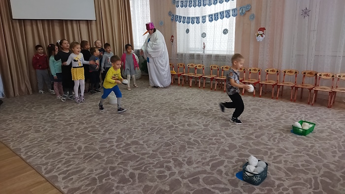 А также в гости пришел друг зимы – снеговик (в роли воспитатель - Котченко И.А.). Снеговик приготовил для детей игры, в которых и сам принимал активное участие. На мероприятии царила светлая, добрая, веселая обстановка, которая позволила детям проявить свои способности и таланты. Все ребята с удовольствием участвовали в конкурсах. «Пронеси снежок в ложке», «Снежки», и др.