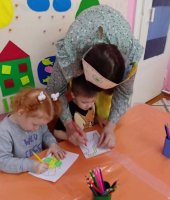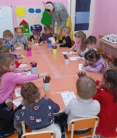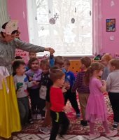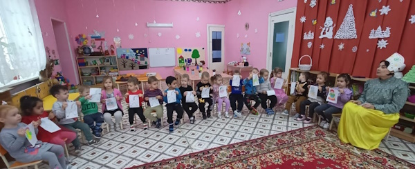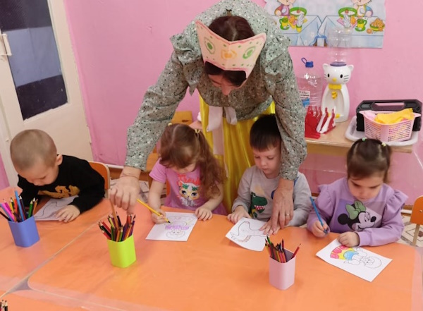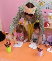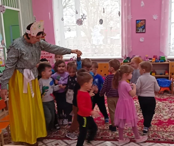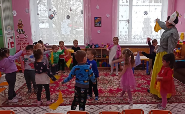 В младшей группе «Ягодки» я провела необычное мероприятие «Виртуальное путешествие в деревню Дымково». В ходе этого путешествия гостья - Дымковская барышня (роль я взяла на себя) рассказала историю создания деревни. Через познавательный фильм «Путешествие в Дымково» ребята познакомились с дымковской игрушкой и процессом создания этих игрушек. В творческой мастерской малышам расписывали шаблоны дымковской барышни и лошадки. Ребята быстро включились в работу, они наносили дымковскую роспись на свои игрушки. Потом малыши с азартом играли в народную игру «Золотые ворота» и танцевали танец с платочками.
