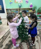 В старшей группе «Ромашка прошла неделя «Новый год у ворот» в течение недели с детьми были проведены беседы: «История нового года», «Новогодние игрушки», «Где живёт Дед Мороз», рисовали с детьми заснеженную березу, разучивали с детьми новогодние стихи и песни, чтоб потом порадовать Дедушку Мороза и Снегурочку. Совместно с родителями был оформлен уголок «Зимушка - Зима», где поместили поделки и аппликации на данную тему. Приняли участие в акции «Помощники Деда Мороза».