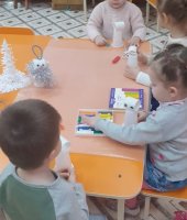 Скоро мы будем встречать самый волшебный праздник, Новый год. Этого праздника ждут все и взрослые и дети. Ребята младшей группы «Ягодки» приняли активное участие в подготовке Нового года. Мы с малышами учили слова песен про елочку и деда Мороза, стихи о зиме и снеговике. А в волшебной мастерской рисовали новогоднюю ёлочку, клеили снеговиков и лепили Снегурочку. На площадке украсили ёлочку нашими снеговичками.