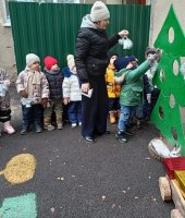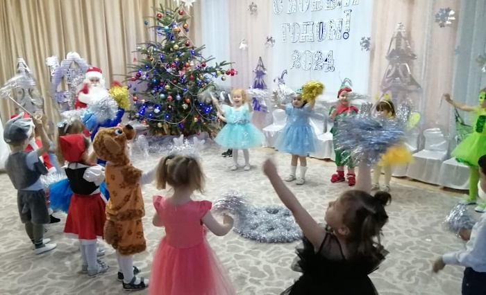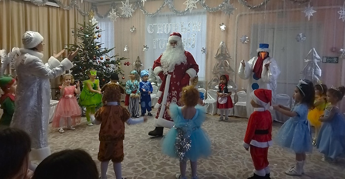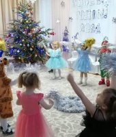 Финалом этой работы стал праздник «У новогодней елочки» вместе с родителями. Все малыши нарядились в карнавальные костюмы и отправились на праздник вместе со Снегурочкой (эту роль взяла на себя). Звонко звучали новогодние песни. Ребята радовали гостей веселыми танцами с фонариками и серебряными льдинками. Играли в игры со Снеговиком и дедом Морозом. И в конце праздника получили долгожданные подарки из волшебной рукавички. В Новом году малыши желают всем: в праздник этот снежный улыбок и добра!