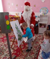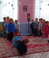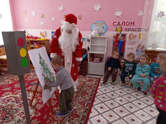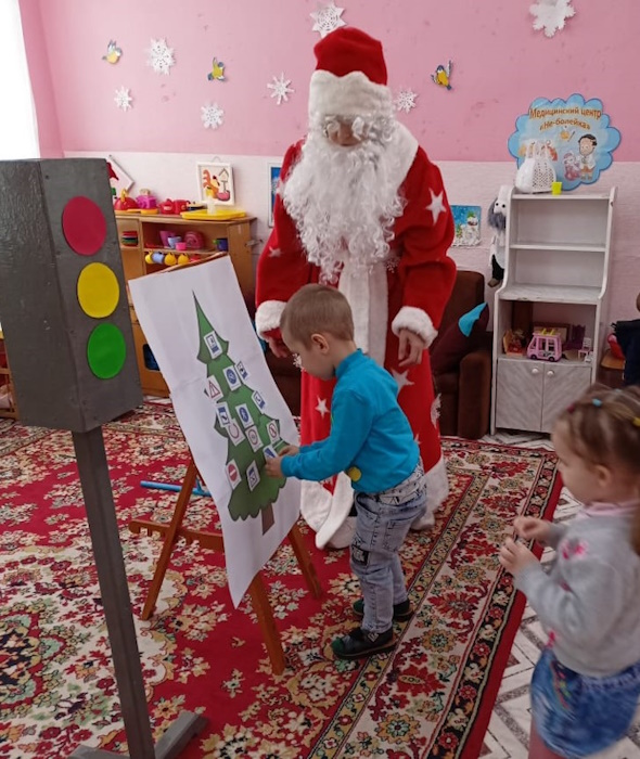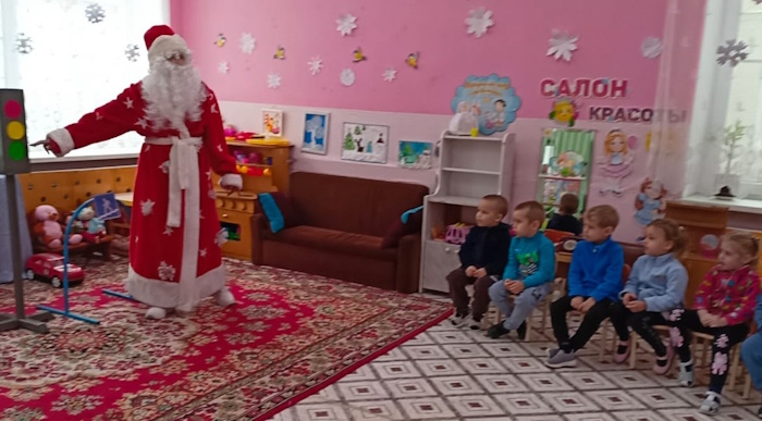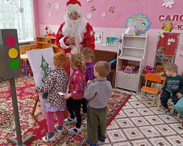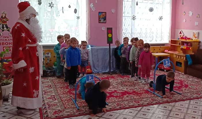 Итогом работы по формированию безопасного поведения в зимний период стало развлечение «Дед Мороз изучает азбуку безопасности». В гости к ребятам пришел дед Мороз (роль взяла на себя) и попросил рассказать о правилах безопасного поведения на улице. Малыши с интересом рассказывали гостю о сигналах светофора. Из цилиндров по очереди составляли светофор, перевозили пассажиров в игре «Такси», преодолевали подземный переход в упражнении «Необычные маневры». А в конце украсили елочку, которую принес дед Мороз, дорожными знаками. Дед Мороз поблагодарил ребят за помощь и отправился домой в Великий Устюг.