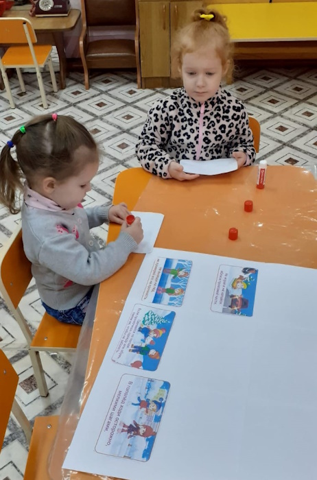 С наступлением зимы потенциальных опасностей на улице становится больше, следовательно, мы взрослые должны формировать у детей навыки безопасного поведения в зимний период. В ходе этой работы я провела ряд мероприятий с детьми: мы оформили плакат «Безопасность детей зимой», рассмотрели картинки по данной теме. Для родителей я приготовила, а малыши вручали памятки «Правила дорожного движения в зимний период».