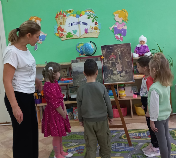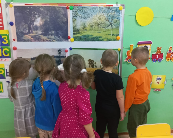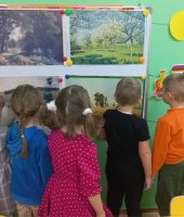 С целью формирования у детей эстетического отношения к окружающему миру, ознакомления с разными видами искусства, развития эстетического интереса в старшей группе «Ромашка» в течение недели были проведены беседы «Любите ли вы рисовать?», «Что мы знаем об искусстве», «Жанры изобразительного искусства», «Ты пришел в театр…». Рассматривали с детьми репродукции картин разных жанров живописи знаменитых русских художников (В.М. Васнецов, В.А. Серов, И.К. Айвазовский, И.И. Шишкин, И. И. Левитан). Ребята увлеченно играли в дидактические игры: «Собери натюрморт», «Составь пейзаж. Времена года», «Узнай и назови жанр живописи».