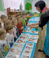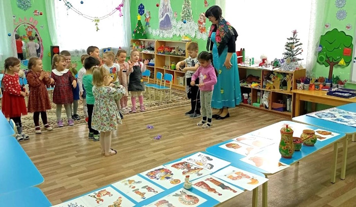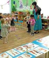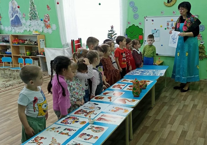 В рамках тематической недели искусства и культуры с воспитанниками средней группы «Непоседы» проводились мероприятия по знакомству с художественными промыслами. Ребята побывали на ярмарке, где их встретила Ремесленница (роль взяла на себя). Ребята на ярмарке рассмотрели разные товары и узнали много интересного о народных промыслах. Также побывали в мастерской и, как настоящие мастера раскрасили дымковские игрушки «Барыню», «Лошадку» и «Козлика».