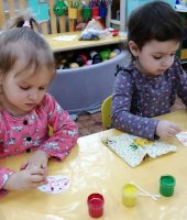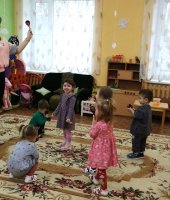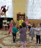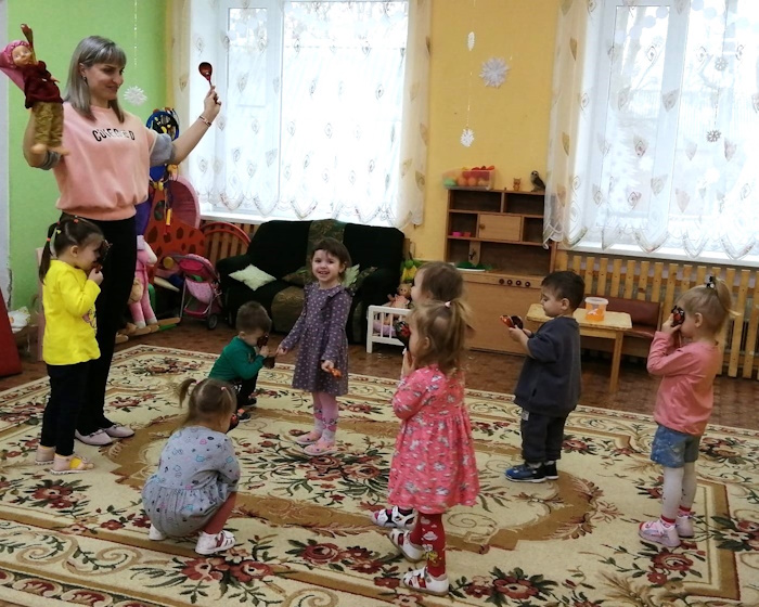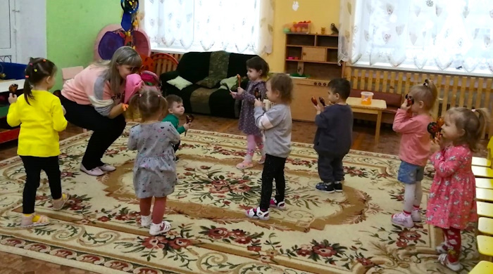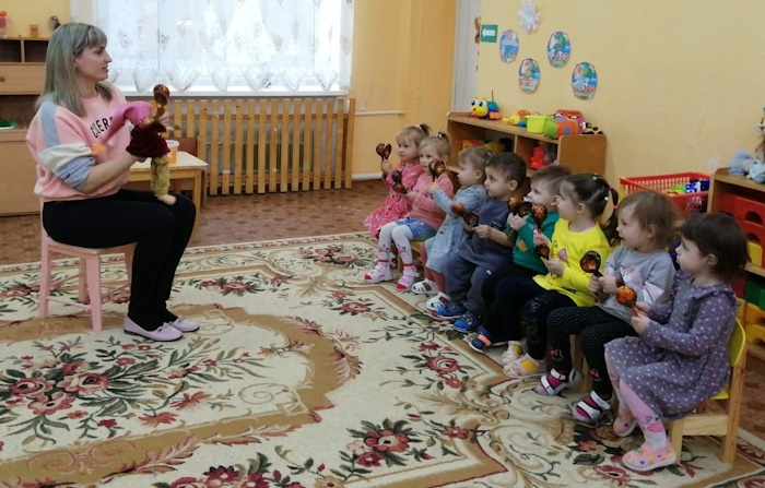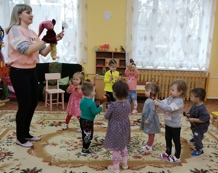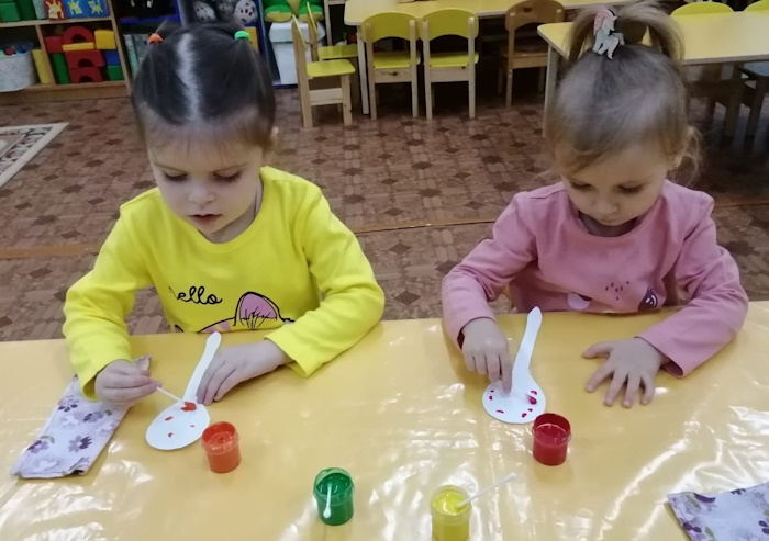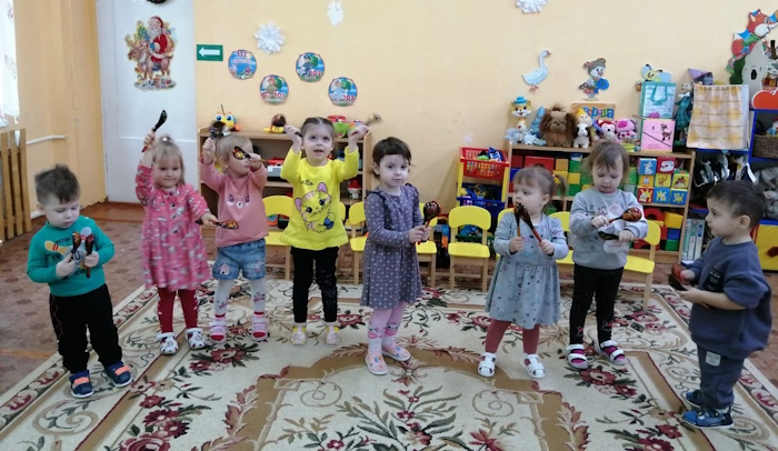 В рамках тематической недели «Искусство и культура», в группе «Малыш» был проведён досуг «Ложки расписные». В гости к ребятам приходил Петрушка с ложками. Он рассказал малышам, что ложки бывают не только железные, но и деревянные «расписные». Петушка раздал ребятам деревянные ложки, на которых все вместе играли под русскую народную песню, а потом с ними задорно пошли в пляс. В конце досуга Петрушка предложил ребятам украсить шаблоны ложек. Малыши очень старались.