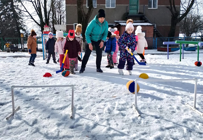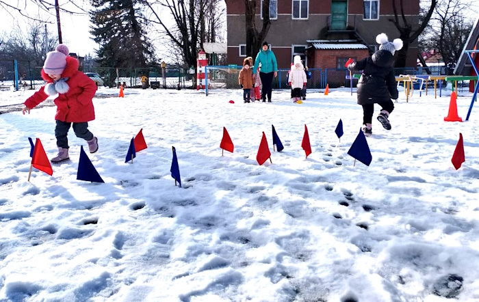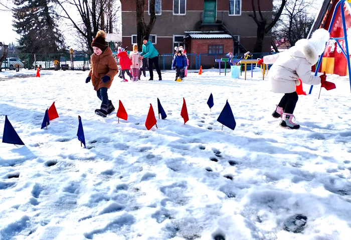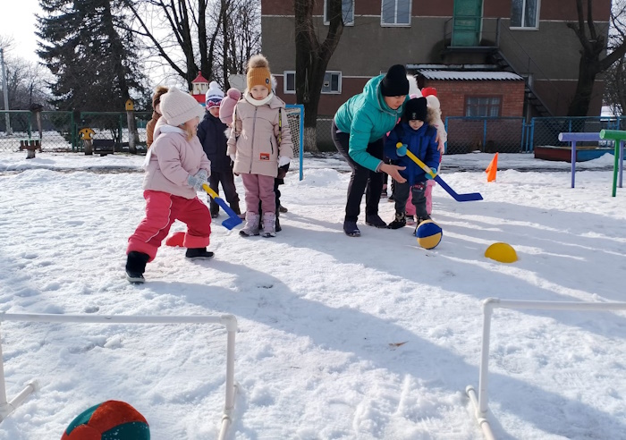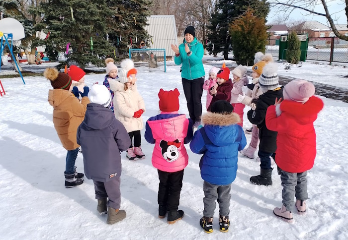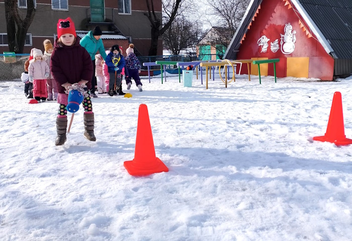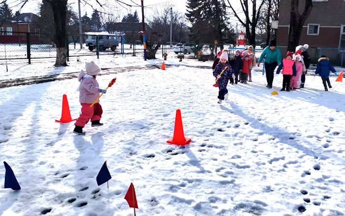 В старшей группе «Ромашка» на спортивной площадке прошло спортивное развлечение «Зимняя спартакиада». В начале соревнований мы с ребятами вспомнили зимние виды спорта. Затем ребята разделились на две команды «Льдинки» и «Сосульки». Ребята участвовали в эстафетах: «Передай факел», «Найди свой флажок», «Донеси не урони», «Меткий стрелок», «Быстрые лошадки», «Хоккеисты». В конце спортивного развлечения была проведена подвижная игра «Бабка - Ежка».