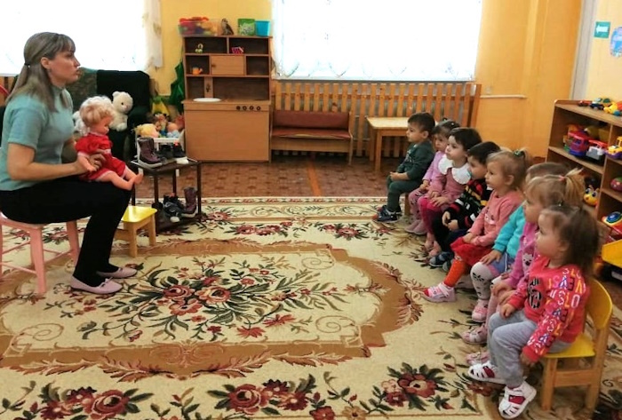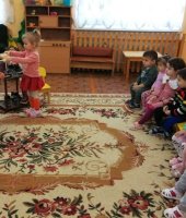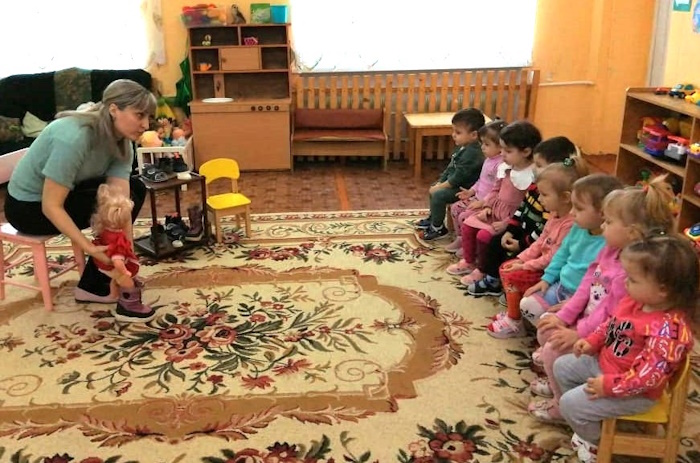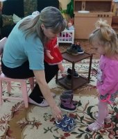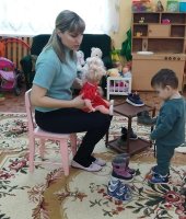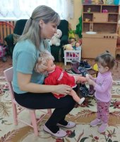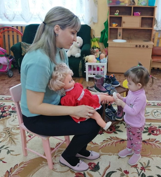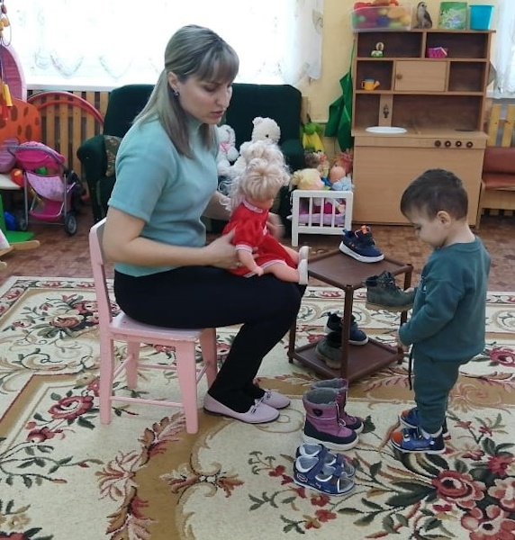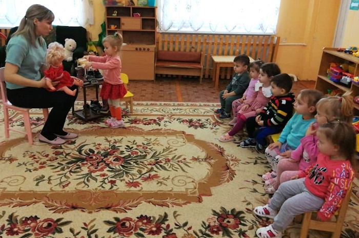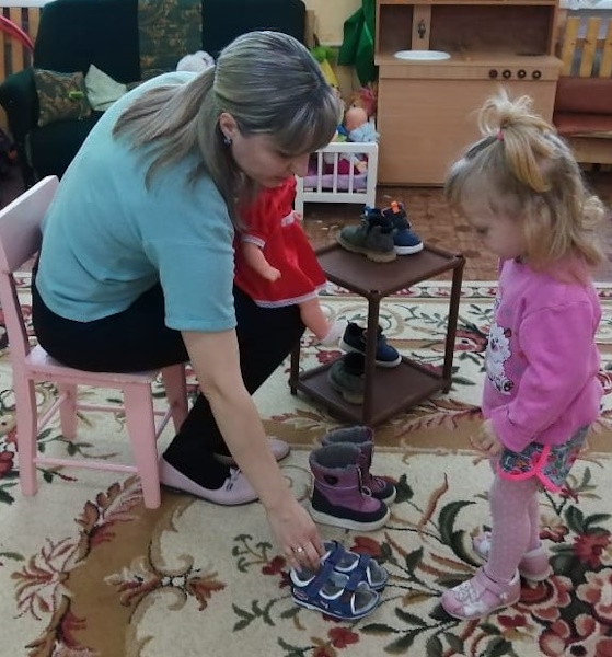 В ходе занятия по ознакомлению с окружающим миром «В обувном магазине» в гости к ребятам группы раннего возраста «Малыш» пришла босоногая кукла Таня. Она потеряла свои туфельки и просит помочь малышей найти ей обувь. Вместе с куклой Таней ребята отправились в магазин и подбирали пары обуви. Подбирая пары обуви малыши нашли потерянные туфельки.