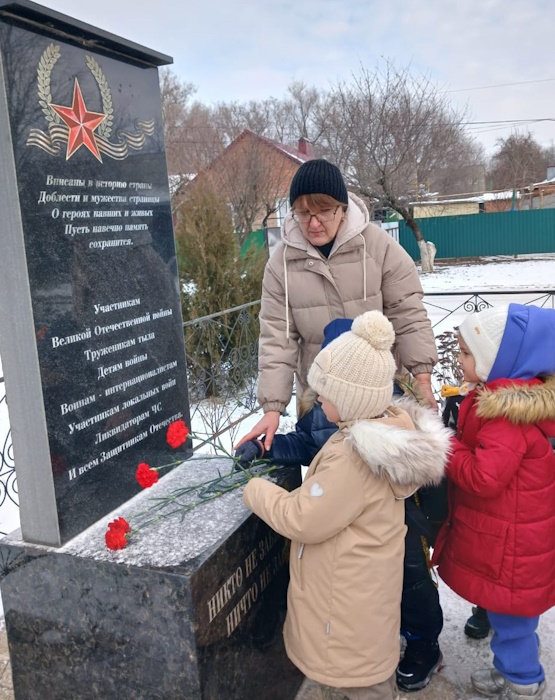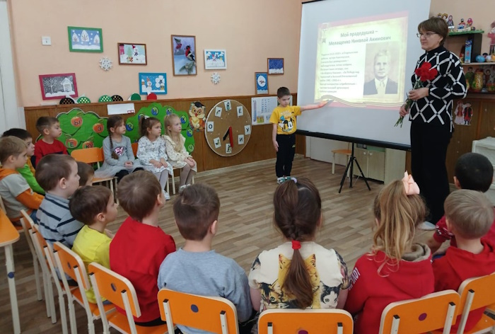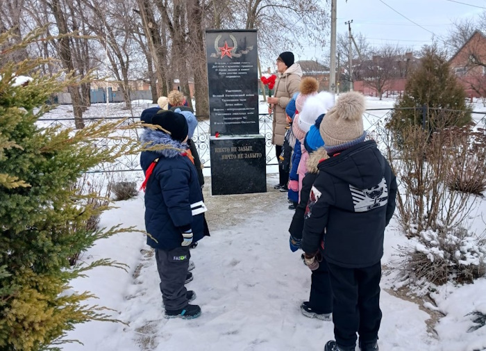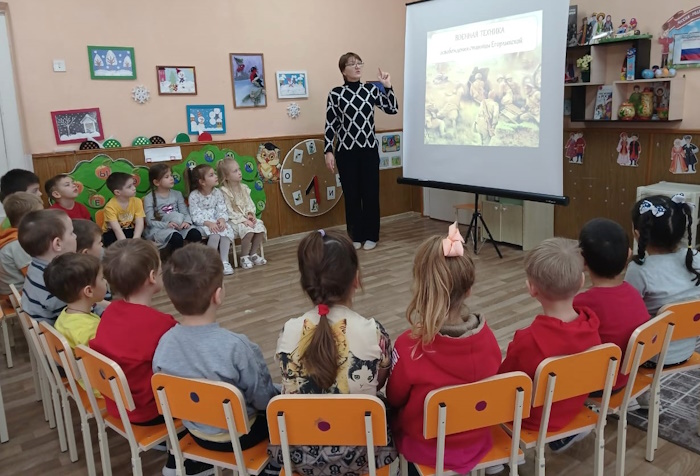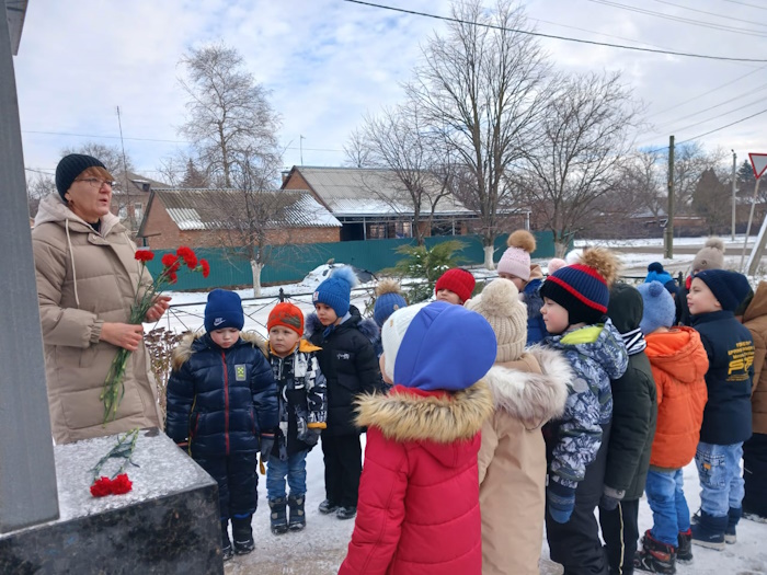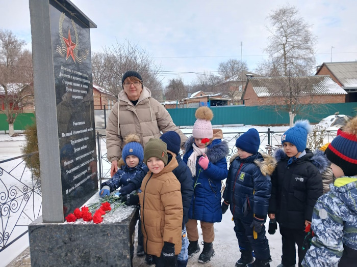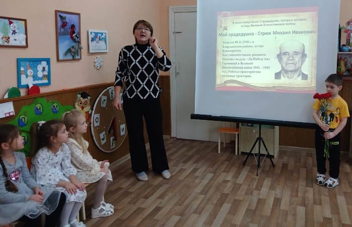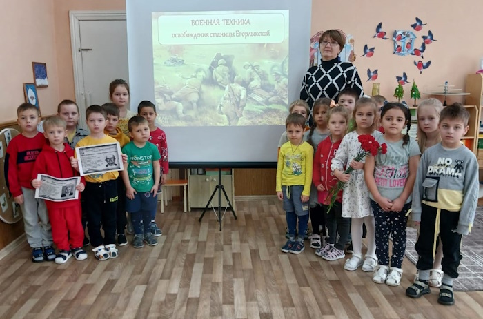 25 января 2024 года в честь памятной даты в старшей группе № 1 «Капельки» прошел «День памяти». Мы с детьми просмотрели презентацию «Военная техника освобождения станицы Егорлыкской», воспитанник нашей группы Богдан Стрюк рассказал о своих прадедушках: Стрюк Михаиле Ивановиче и Милащенко Николае Акимовиче, которые воевали в годы Великой Отечественной Войны и были уроженцами Егорлыкского района.