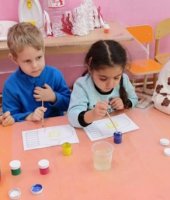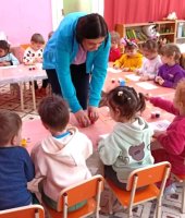 В младшей группе «Ягодки» было проведено увлекательное занятие по изобразительной деятельности «Раскрасим рукавичку - теремок» по мотивам русской народной сказки «Рукавичка». Сначала мы с ребятами посмотрели сказку «Рукавичка» и обсудили иллюстрации к ней. Создав проблемную ситуацию, предложила раскрасить рукавичку – теремок для лесных жителей. Все дошколята активно включились в процесс. В ходе рисования мы с ребятами закрепили приемы рисования гуашью. Каждый старался раскрашивать аккуратно и красиво. Шедевры рукавичек - теремков поместили на выставку.