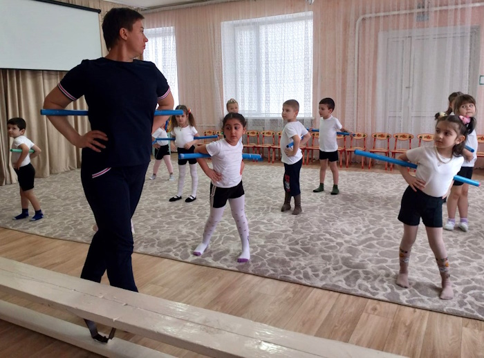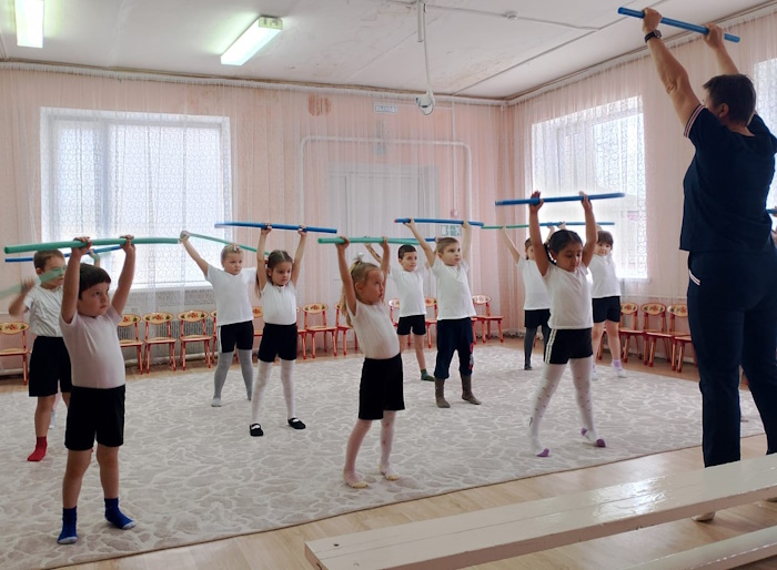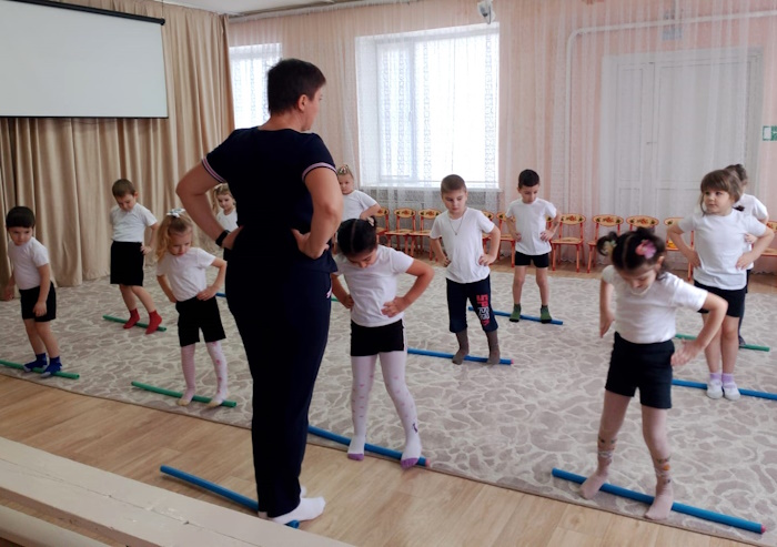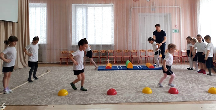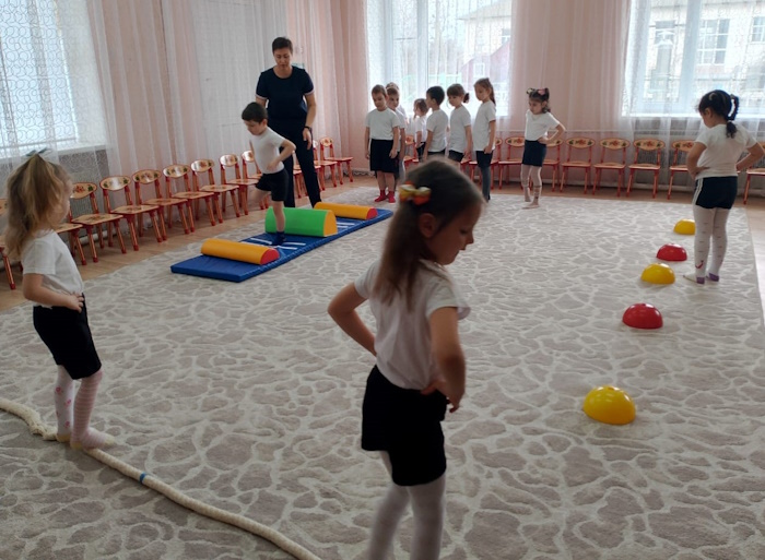 «Сильные, быстрые, здоровые» - так называлось занятие, участниками которого стали дети старшей группы «Ромашка». В ходе занятии дети выполняли строевые, общеразвивающие упражнения, направленные на профилактику плоскостопия и укрепление всех групп мышц. Также выполняли основные виды движений: прыжки через малые бревна; ходьба по канату приставным шагомбег змейкой. Бурю эмоций и массу впечатлений вызвала игра «Ловишки с лентами». В конце занятия было проведено упражнение на расслабление.