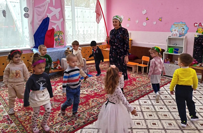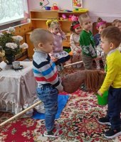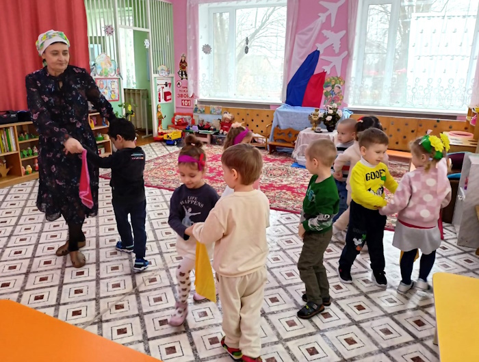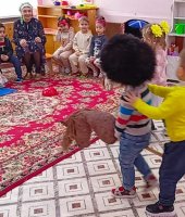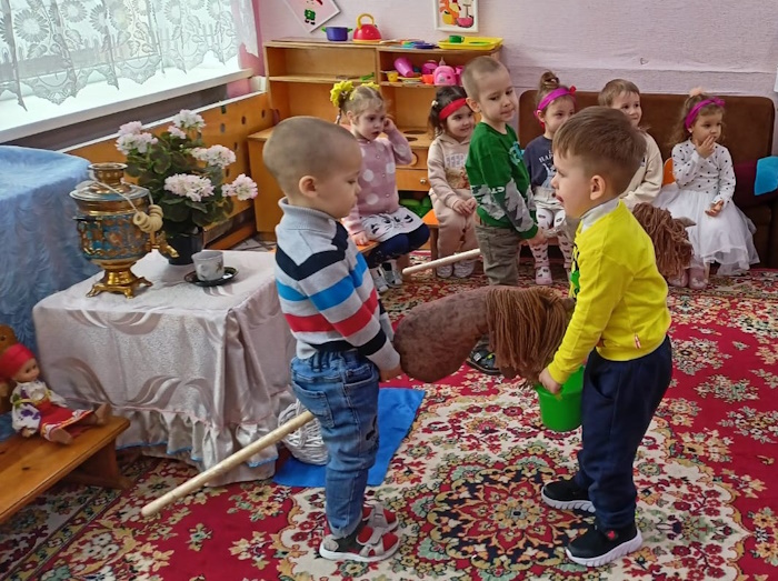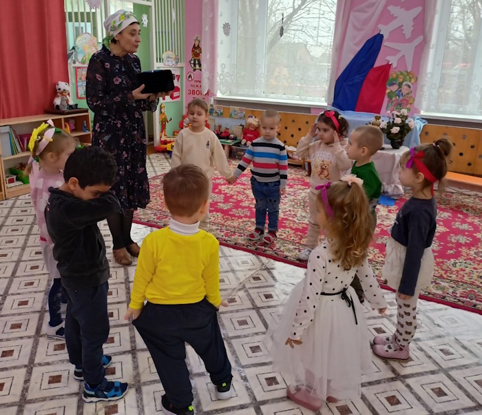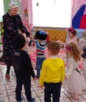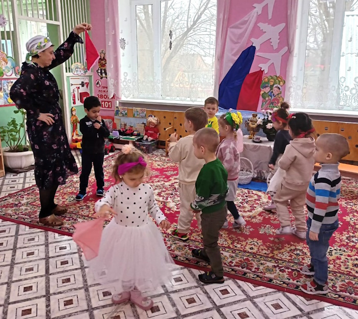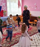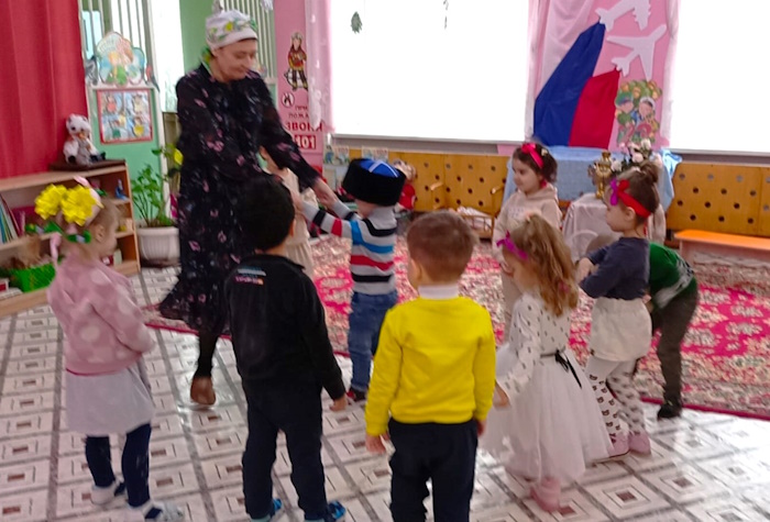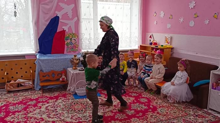 Воспитанники младшей группы «Ягодки» побывали на посиделках у казачки Варвары (роль взяла на себя). В ходе этого мероприятия я решала важную задачу: воспитания у дошкольников любви к малой Родине – Донскому краю. Малыши вспомнили название своей станицы, а казачка Варвара познакомила их с казачьими обычаями. Дошколята с азартом играли в казачьи игры: «Плетень», «Золотые ворота», «Передай кубанку», «Конники», «Напои коня», слушали казачьи песни. Ребята станцевали задорный танец с платочками.