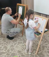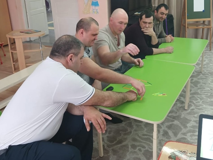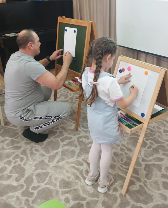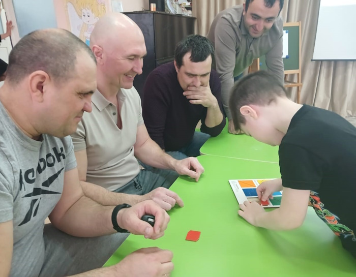 В преддверии праздника Дня защитника Отечества в старшей группе «Капельки» состоялась встреча детей и отцов. Команда пап и команда детей приняли участие в интеллектуальной игре «Знатоки». В тёплой и радостной обстановке под весёлый смех и активную поддержку со стороны пап и детей команды выполняли задание «Найди отличие», «Собери квадраты Никитина», «Выложи по схеме», «Угадай животное по фрагменту», «Запомни и назови». Участники демонстрировали свои таланты в играх на логику и внимание. Победила дружба!