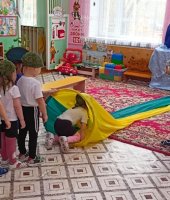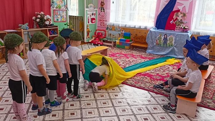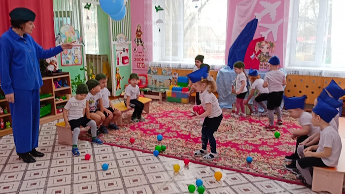 Каждый год, 23 февраля, мы все отмечаем праздник – день защитника Отечества. Защитники есть в каждой семье: дедушки, дяди, старшие братья и, конечно же, наши любимые папы. В преддверии этого праздника в младшей группе «Ягодки» я провела рад мероприятий приуроченных этой дате: беседы «Военная техника», «Мой папа защитник», «Рода войск», выучили с малышами стихи и песни к этому празднику, оформили открытки для пап. А ловкость, изобретательность, выносливость дошколята показали в спортивном развлечении «Школа юных защитников». В этом развлечении участвовали две команды. Ребята активно выполняли задания в играх–эстафетах: «Разноцветные флажки», «Проползи через тоннель», «Передай снаряд», «Переправа», «Минное поле». А закончили спортивное соревнование упражнением с шариками «Салют».
