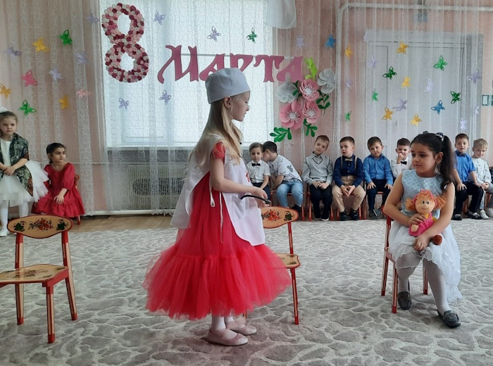 В старшей группе «Капельки» прошел праздник для мам и бабушек. Женщины пришли на утренник нарядные, взволнованные, красивые, счастливые. Выступление детей на празднике – лучший подарок, который мамы могут получить от своих детей. К ребятам на утренник приходила в гости Врединка (роль исполнила воспитатель Агафонова Л.М.), которая капризничала и хотела детей научить плохим поступкам. Ребята исполнили для присутствующих и Врединки «Весенний танец» и объяснили гостье, что вредничать нехорошо. Дети спели нежные, добрые красивые песни про маму и бабушку, исполнили задорные частушки, показали сценки «Три мамы», поиграли в игру «Назови маму ласково». Было весело, интересно, радостно. И в заключение праздника ребята пригласили своих любимых мам и бабушек на танец «Уборка».