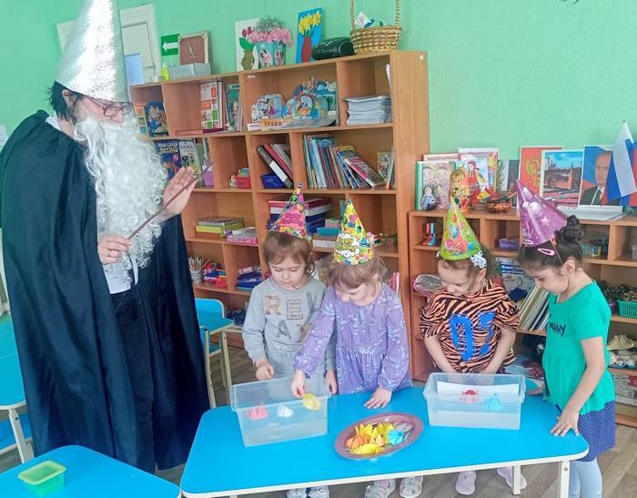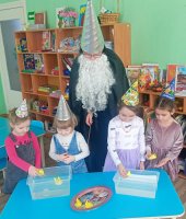 Мальчишкам и девчонкам понравилось быть маленькими волшебниками. Ребятишки справились со всеми заданиями, и волшебник вручил им медали «Маленькие волшебники».