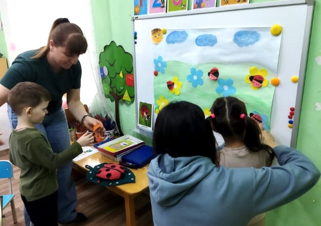 В средней группе «Непоседы» прошло родительское собрание по теме: «Аппликация как способ развития творческих способностей ребенка». Родителей познакомила с одним из видов художественно - эстетического развития - аппликацией, и её ролью в развитии творческих способностей ребенка. В ходе мастер – класса для родителей предложила изготовить коллективную аппликацию «Божья коровка». После пошагового, объяснения, все приступили к работе. Родители погрузились в атмосферу творчества и с удовольствием мастерили божью коровку совместно с детьми. Мастер-класс прошел плодотворно, все родители остались довольны.