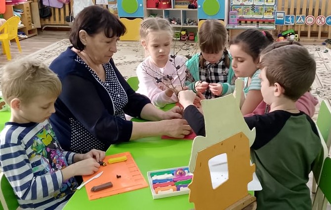 Ребята подготовительной группы «Звёздочки» в совместной деятельности вылепили грачей и придумали композицию «Грачи прилетели». Грачи первыми прилетели и принесли на своих крыльях Весну - красну. Играя в дидактические игры: «Перелетные и зимующие птицы», «Сложи птицу», дети рассказывали о том, какие птицы прилетают к нам весной. В ходе совместной деятельности вспомнили о пользе птиц, о бережном отношении человека к ним, о любви к природе и окружающему миру. Во время прогулки, ребята с большим интересом рассматривали небольшие углубления в земле, которые сделали воробьи, это так они радуются весне и чистят свои перышки. Ребята проявили свой познавательный интерес к жизни птиц, любознательность и активность.