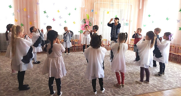 Чтобы больше узнать о жизни птиц и открыть некоторые птичьи секреты, дети с большим удовольствием приняли участие в музыкальных играх; «Ворон», «Совушка и дети», «Займи домик». На детских музыкальных инструментах исполнили песенку «Птичка». Также в музыкальной гостиной ребята угадывали голоса птиц, исполнили песню «Кукушка», танцевали, изображая птиц.