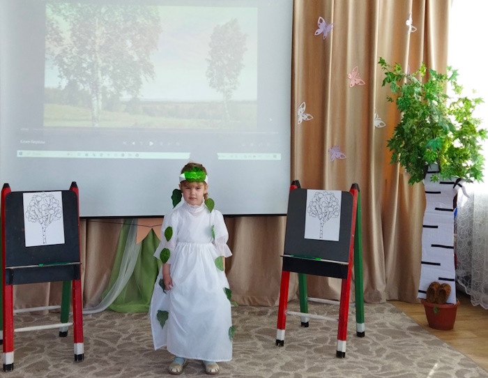 11 апреля ребята средней группы «Непоседы», побывали в музыкальной гостиной, посвященной Дню русской берёзы: «Русская берёза». В музыкальной гостиной в ходе демонстрации презентации я рассказала воспитанникам, что белая березка - дерево России, символ красоты русской природы, символ России, она прекрасна в любое время года. С давних времен о ней слагали песни, водили вокруг нее хороводы, сочиняли пословицы, загадки, стихи и сказки. Многие художники изображали березку на своих полотнах, а композиторы посвятили березке свои лучшие песни.