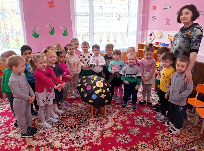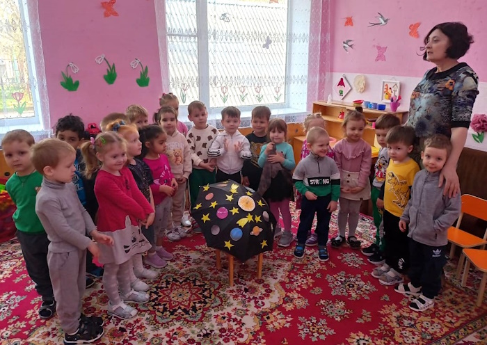 Ребята группы «Ягодки» мечтают стать летчиками и космонавтами. Но чтобы покорить космос надо его изучить. В день Космонавтики 12 апреля мы совершили виртуальную экскурсию - «Путешествие по галактике» и дети узнали много интересного о профессии космонавта. Также вместе с дошколятами изготовили макет «Солнечной системы». Каждый ребенок прикрепил планету или комету, или звезду на макет. В ходе этой работы малыши познакомились с названием планет. Ребята воодушевились работой и захотели подарить родителям открытку раскрашенную своими руками по теме «Космос».