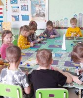 Узнав много интересного о нашей вселенной, дети отражали в продуктивной деятельности - большим желанием лепили космонавтов, космодром с ракетами, а некоторые ребята слепили Белку и Стрелку. В ходе совместной деятельности «Все о космосе», оформили коллаж: «Первый, космический корабль «Восток».