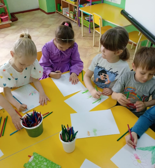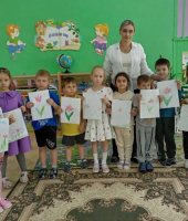 Завершающим заданием было изобразить свой любимый цветок. Ребята с интересом принялись за работу и в результате у каждого на белом листе бумаги распустился красивый цветок.